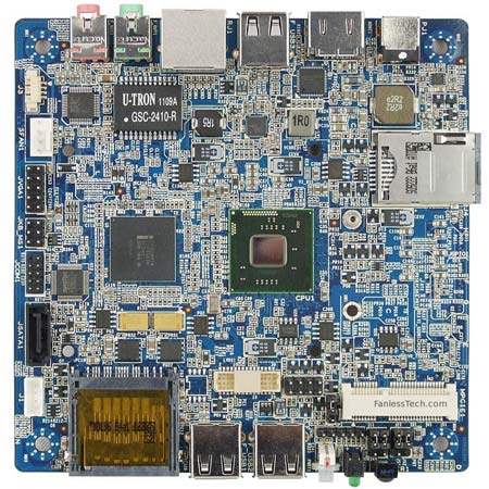 Компания J&W, название которой недавно встречалось в наших новостях в связи с разработкой набора для сборки мини-ПК на базе Cedar Trail, объявила о выпуске другого продукта на этой платформе. По словам производителя, плата, показанная на иллюстрациях, является первой системной платой типоразмера Nano-ITX на платформе Cedar Trail. На печатной плате размерами 120 x 120 мм находится двухъядерный процессор Intel Atom D2700 (2,13 ГГц) или D2500 (1,83 ГГц). На обратной стороне платы есть слот для модуля памяти SO-DIMM объемом до 4 ГБ. Поддерживается память DDR3-1066 и DDR3-800. Оснащение включает слот Mini PCI Express, предназначенный для установки адаптера беспроводной сети. Есть один порт SATA 3 Гбит/с, пять портов USB 2.0, два из которых выведены на штырьковый разъем, порт Gigabit Ethernet, видеовыходы D-Sub, LVDS и HDMI. Кроме того, на плате установлен слот для карточек памяти SD и SDHC, аналоговый аудиовыход, порт RS232, ИК-порт и PS/2. В качестве опции может быть ...read more...