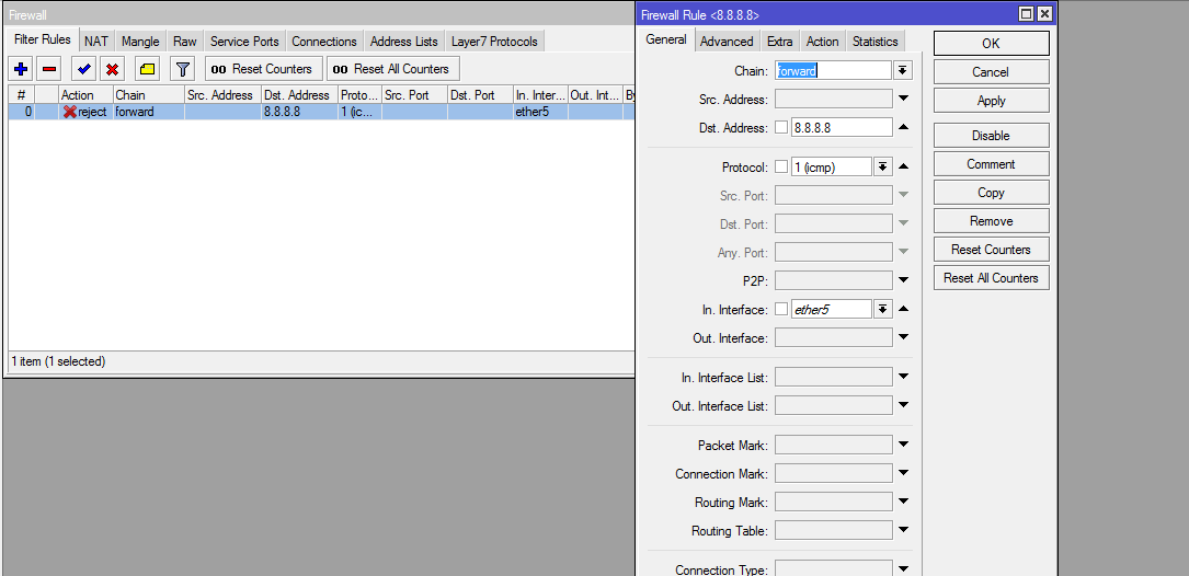 Вы также можете настроить это в графическом интерфейсе в разделе «IP / Firewall / Filter Rules»