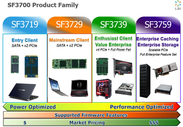 LSI Corporation официально анонсировала новое поколение контроллеров для твердотельных накопителей SandForce SF3700. Главной особенностью трехтысячного семейства является поддержка интерфейсов SATA 6 Гбит/с и PCI Express х4 «одной интегральной схемой», что должно значительно упростить разработку новых моделей и сократить производственные затраты.