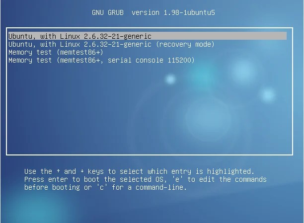-  Когда отображается меню GRUB 2, выберите ядро для загрузки.